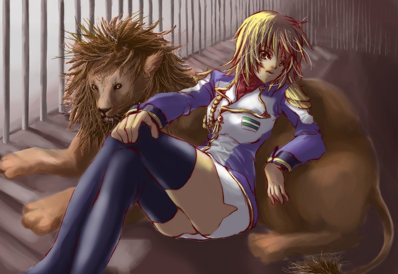 脚を組ませたい→あれ、女王さまっぽくね?→某物語でアスランいるしライオンでも描くか→・・・あんれ?ノ(^o^)ヽ